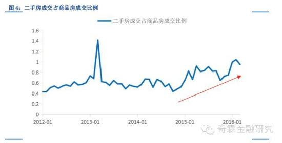 首先,本轮房地产销售与过去最大的不同是以二手房为主的交易,以改善型需求为主。改善性住房交易是拉动本轮房地产上涨的主要动力。1-2月份,住宅销售占全部商品房销售面积比例达95.0%,其中90平方米以上的大中户型住宅占比76.6%,而二手房成交占商品房成交的比例高于去年全年。二手房交易是存量房产权的更替,对去库存意义不大,但在明确的“去库存”目标下,一方面或有可能出台新的去库存政策使二手房市场顺带受到利好,另一方面消耗的库存也为未来二手房市场注入了增量房源。