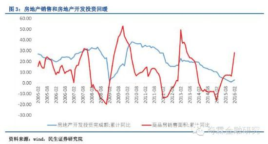 那么问题来了,我们看到16年1-2月房地产开发投资同比增长3%,销售面积同比增长28.2%,土地购置面积大幅反弹至-19.4%,房屋新开工同比上升至13.7%,那么这是否意味着房地产开发投资新的拐点的出现?这是目前债券市场投资者最关注的问题之一。