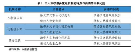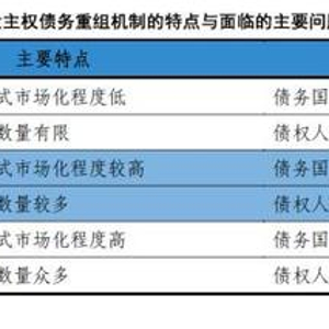 A: 债务国的道德风险与债权人的协作困境是三大主权债务重组机制都要应对的难题。然而,在不同的融资方式下,主权国家债务的性质、债权人特征等因素有所不同,三大主权债务重组机制所面临的债务国道德风险的高低与债权人协作难度的大小亦存在差异。从巴黎俱乐部到伦敦俱乐部再到债券互换,随着融资方式市场化程度的加深,债务国的道德风险逐步下降;随着债权人数量的增加,不同债权人之间的协作难度渐次增大(表1)。