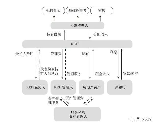 这是不准确的。你考虑过REITs是如何被管理的吗?有两种管理方式——内部管理和外部管理。内部管理是指REITs管理人自己管理资产组合。示例如下图。