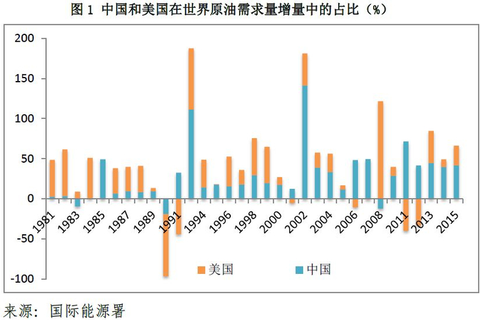 通过推出中国版原油期货建立起人民币国际结算与支付体系,是促进人民币国际化、削弱美元在全球储备货币体系中的主导地位并建立人民币国际储备货币地位的基础。目前世界原油交易仍以纽约交易所(NYMEX)的西得克萨斯中间基原油(WDI)、伦敦国际石油交易所(IPE)的北海布伦特原油(Brent)以及新加坡国际金融交易所(SIMEX)的迪拜原油(Dubai)期货合约价格作为基准价格,因此原油期货市场的发展影响着在国际市场上的定价能力。2017年,中国超越美国成为全球最大的石油净进口国与能源消费国,在原油市场需求量增量的占比超越美国,高达40%左右(图1),却由于缺少自己的原油期货市场,在原油定价方面始终能力有限。而在美元走弱的市场背景下发行并开展人民币计价的中国版原油期货合约并使之具有国际影响力,一方面将能够形成亚洲最重要的原油价格标准,使之成为全球石油定价与贸易的新基准。另一方面,由于中国原油期货使原油出口国能绕开美元计价的标准而用人民币进行交易,可以极大地推进原油贸易的人民币结算,使人民币取代占主导地位的美元成为石油甚至其他大宗商品贸易中的计价结算货币,从而增强国际金融市场对人民币持有意愿,增加人民币流动性,推进人民币国际化。