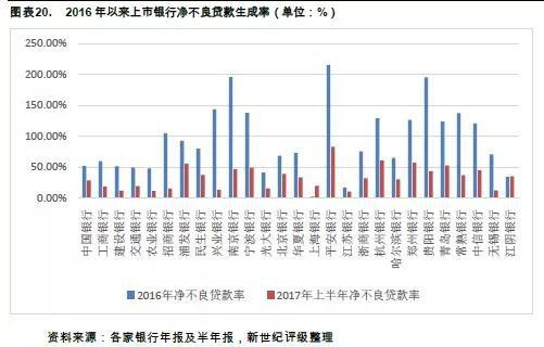从净不良贷款生成率来看,2017年上半年度,上市银行净不良贷款生成率22.09%,较2016年下降42.89个百分点,其中国有大型商业银行净不良贷款生成率依然最低。