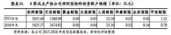 2017年1月以来,保监会对开展非寿险投资型业务的机构一对一下发通知,要求暂停非寿险投资型产品的试点。自2010年以来,先后有8家产险公司获批试点经营投资型产品,包括安邦财险、天安财险、紫金保险、太保财险、人保财险、华泰财险、众安保险、平安财险。整体来看,大部分产险公司主要在2015年后获批开展相关业务,因此业务规模不大;而安邦财险和天安财险业务获批时间较早,2016年末,上述两家产险公司投资型险种投资账户规模分别达5425.27亿元和2474.82亿元,相关业务受影响较大。
