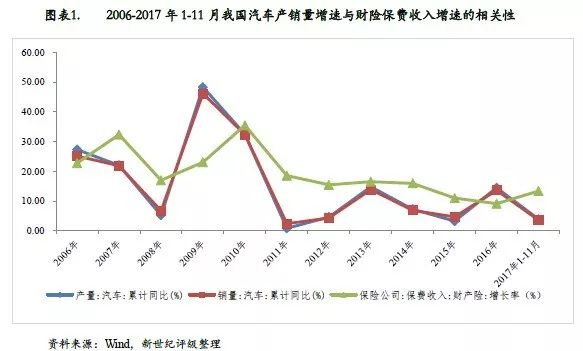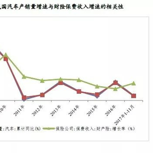 2017年1-11月,我国汽车行业产销增速较2016年分别下降10.58个百分点和10.06个百分点,新车产销量增速放缓,但受益于宏观经济企稳影响,非车险业务快速增长,使得产险公司保费收入增速较2016年上升4.33个百分点至14.34%。