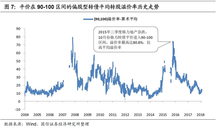 (1)平价在90-100元区间的转债平均转股溢价率历史均值为20.7%,目前在13.4%附近;