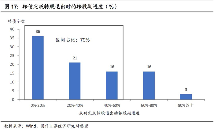 总的来看,大部分转债均在转股期前半程就完成全部转股,如果按6年发行期限折算存续期时长,则在存续期第3至4年有八成概率成功转股退出。