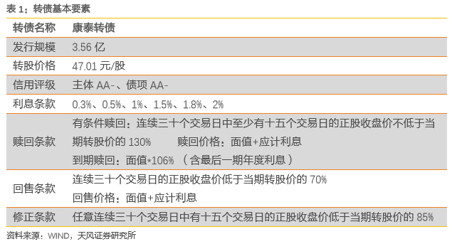 康泰转债要素