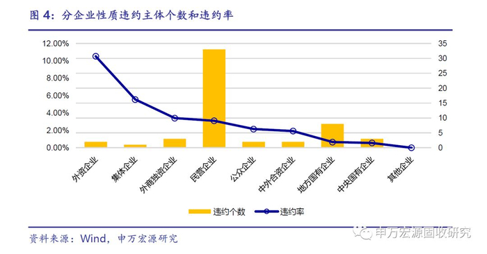2)企业性质:民企违约高发,央企、地方国企相差不大