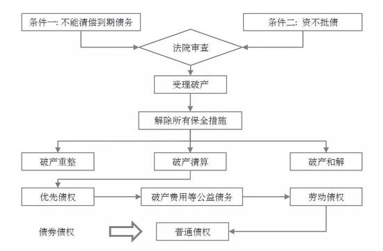 破产程序还可细分为破产重整、破产和解和破产清算,考虑到债券持有人通常都是普通债权人, 位列破产清算财产分配顺序之末,相比于其他债权人而言,债券持有人毫无优势可言,因此进入破产程序,尤其是破产清算程序对于债券持有人而言,是万不得已的选择。