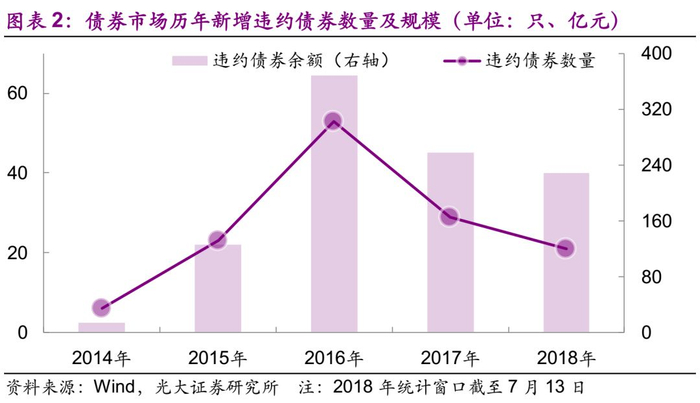截至2018年7月13日,债券市场共有67个主体发行的132只债券发生了违约(仅为银行间、交易所交易的债券),涉及违约的债券余额规模达993亿元。