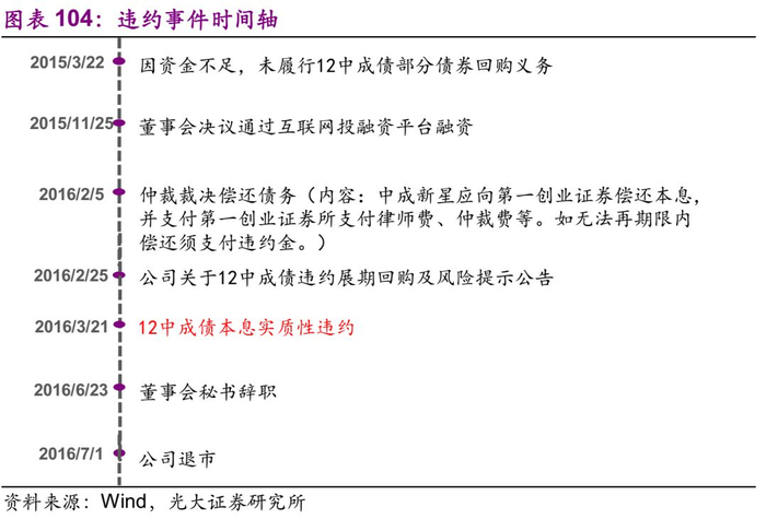 1)无法履行回购义务:2015/3/22 因资金不足,未履行12中成债部分债券回购义务;
