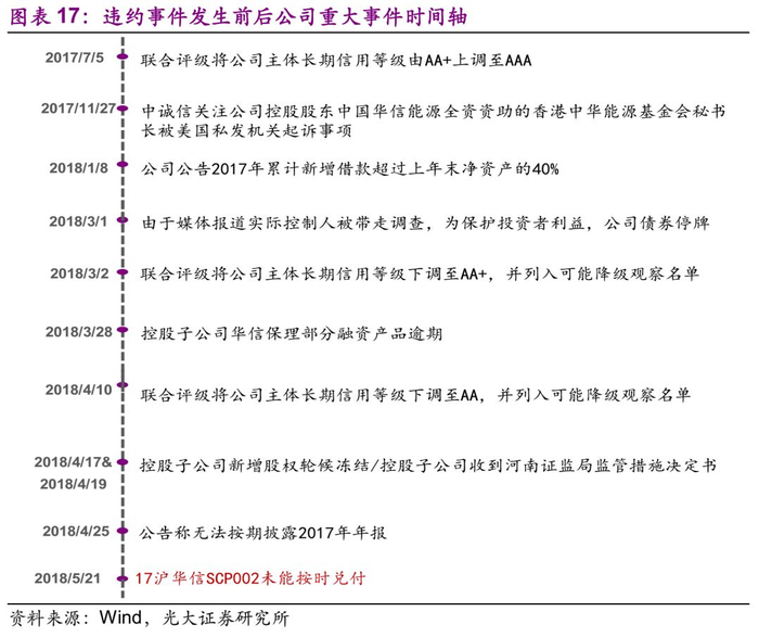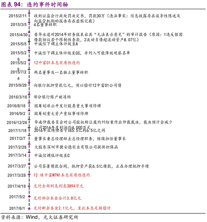 债券违约前重大事项有:评级下调;未实现2017年度盈利预测;全资子公司涉及诉讼;公司涉嫌违反证券法律法规被立案调查。