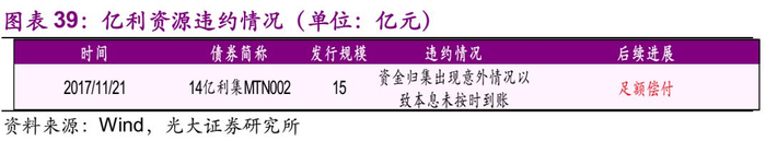 发行人亿利资源是民营企业,截至2018年7月13日,亿利资源共涉入1起技术性违约事件。截至2017年11月21日,公司已经向上海清算所划付12.44亿元偿债资金,另有3.685亿元资金未到账,由于偿债资金归集出现意外情况,资金划转时大额交易系统已关闭,最终未能在兑付日日终,14亿利集MTN002本息未能全额兑付。而2017年11月22日公司已兑付债券的付息兑付资金。