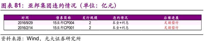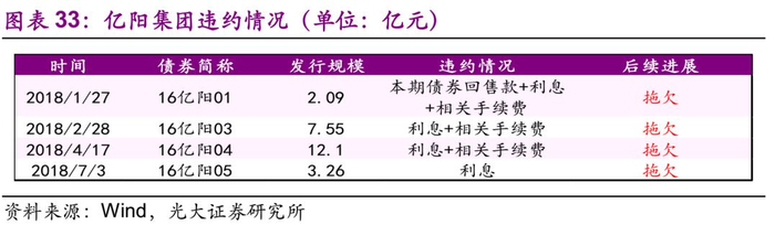 发行人亿阳集团为民营企业,截至2018年7月13日,亿阳集团共涉入4起一般企业债违约事件。公司应于2018年1月29日支付“16亿阳01”回售款、2017年1月27日至2018年1月26日期间的利息及相关手续费共计2.24亿元。由于公司正在进行重组工作,故无法按时偿还上述款项,构成实质性违约;2018年2月28日,拖欠“16亿阳03”利息及相关手续费,构成实质性违约;2018年4月17日,拖欠“16亿阳04”利息及相关手续费,构成实质性违约;2018年7月3日,拖欠“16亿阳05”利息,构成实质性违约。