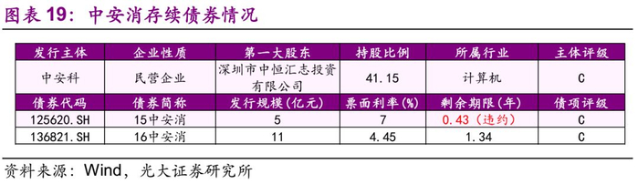 截至2018年7月13日,公司存续债券有2只,规模合计16亿元,其中“15中安消”已违约。