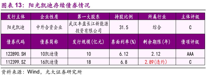 发行人阳光凯迪为中外合资企业,截至2018年7月13日,阳光凯迪涉入1起一般公司债违约事件。2018年6月1日,“16凯迪债”不能按期支付利息,已构成实质性违约。