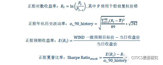 对于转债正股而言,我们直接参考传统的夏普比率计算公式对正股的夏普比率进行测算。我们的主要假设包括: