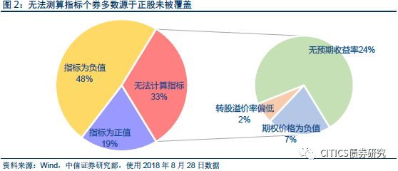 对于纯债溢价率为负值的转债标的而言,其往往受到信用风险问题的冲击,贴现率远低于隐含收益率水平导致转债价格跌破纯债价值,此类标的期权价值处于深度虚值区间之内,而我们的目标是从收益率的角度比对转债与正股相对性价比,期权价值为深度虚值以及信用风险较大的标的并非主要目标。