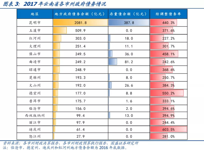 迪庆州、丽江市、怒江州、昭通市和玉溪市无存量城投债。