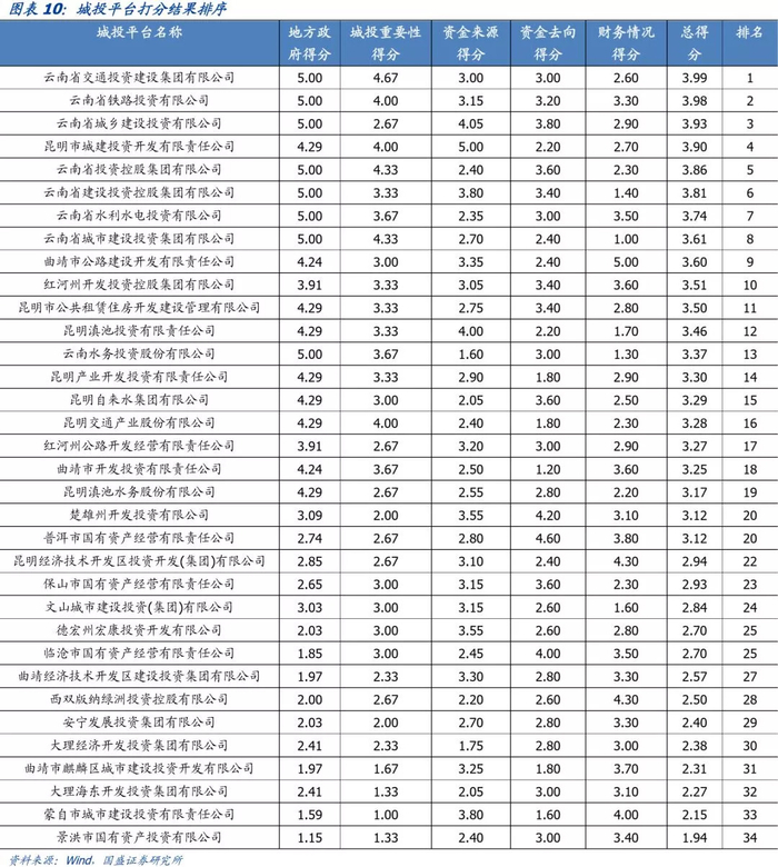 三、云南省城投平台打分排序