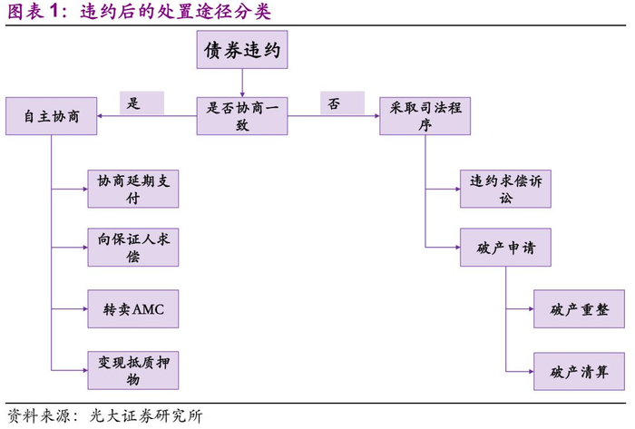 总的来讲,债权、债务人双方协商解决是相对友好的解决措施。发行人无法履约且缺乏第三方代偿履约的情况下,债权人可以通过司法程序进行求偿。