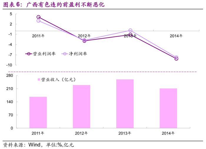 2015年11月5日,广西有色发布公告,企业因巨额亏损,导致“14桂有色PPN003”无法兑付,开启了债券市场违约。