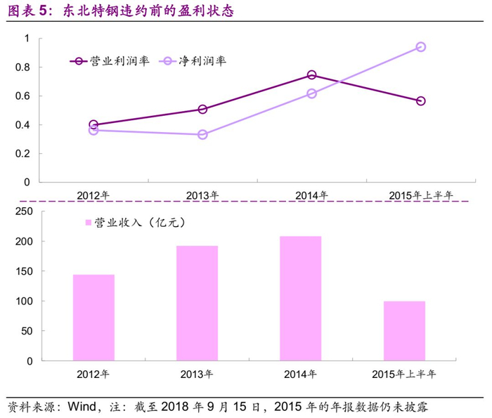 东北特钢自2016年3月董事长杨华先生意外身亡,随后第四天,开启了东北特钢的债券的多起违约事件,2016年10月正式进入破产重组程序,2017年8月11日,大连中级人民法院裁定通过重整计划。下表的经营状况体现了东北特钢的主要问题在于财务费用对盈利的侵蚀严重。