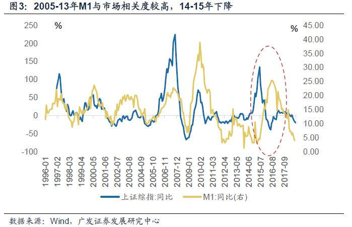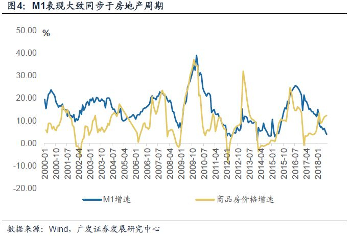 除14-15年等少数时段,绝大部分周期时段M1与权益市场、房地产价格均具有较好的相关性。从微观角度去看,M1周期往往同步于企业现金流的好转,而现金流领先于企业盈利回升;A股股指也具有类似指向性,这就形成了两个领先指标之间的同步性。从大的周期来看,M1顶一般对应权益市场顶;M1底一般对应权益市场底。在过去20年中只有在14-15年等少数时段有所例外。类似道理之下,M1周期与房地产市场价格也有相关性。