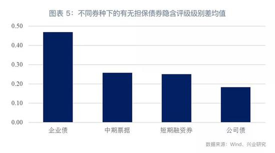 从债券种类来看,企业债整体级别差较高,主要是由于企业债中城投债占比较多,这些债主要是由大型银行担保,相当于银行担保效力在券种上的体现。
