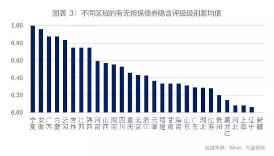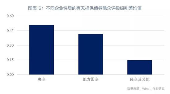 先从企业性质来看,级别差按照央企、地方国企、民企的顺序下降,企业性质所体现的最直观的就是发行人风险水平,即该图表说明了发行人信用资质越弱,级别差越小,(A-B)×N越小。由于发行人自身资质弱会使A变大,因而(A-B)×N较小一定是由于N较小。由此可见N可能与被担保方自身资质有关,资质越弱N越小,与上文结论一致。