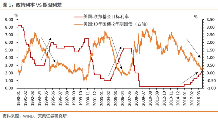 今年以来,美债期限利差持续收窄,近期10年期与2年期国债利差仅有20BP左右。在加息背景下,市场预期其很快会发生倒挂。