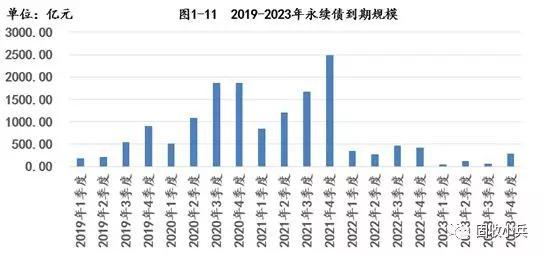 由于近年来永续债发行规模不断扩大,且产品期限多以3+N,5+N为主,故未来几年将有大量永续债到期,尤其是2020年和2021年,永续债到期规模较大,2021年第4季度永续债到期规模近2500亿元。