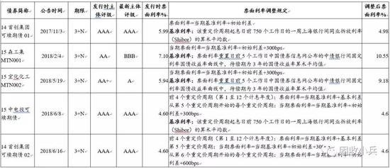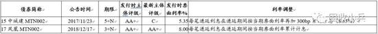 2.如果调整后票面利率远远高于发行时的票面利率(15森工集MTN001、15宜化化工MTN002),而发行人却依然选择展期或递延利息,很可能是发行人出现了财务危机,一般伴随着评级的下降。