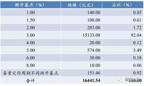 从目前发行的永续债来看,跳升基点以300bps为主,也有其他跳升基点,但占比不高。