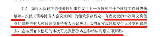 对于债券投资者而言, 最关心的问题无外乎发行人无法维持担保比例, 是否能够要求发行人提前还本付息的问题。维持担保比例的机制在法律上类似于《合同法》第六十八条规定的“不安抗辩权”制度, 而法院亦曾有参照《合同法》第六十九条判决解除合同、要求发行人提前还本付息的先例。因此,无法维持担保比例的违约行为是否足以解除合同,在可交债投资者的维权过程中引发了热议。但仅就目前的司法实践来说,由于募集说明书缺乏明确的约定, 仅依据无法维持担保比例的违约行为就想要解除募集说明书, 实现提前还本付息依旧困难重重。实际上, 可交债同样也可以通过约定“违约事件”触发后的加速到期机制来实现投资者保护, 但在我们看过的十几只可交债中,却只有一份募集说明书中有类似的安排: