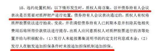 既然是否能够提前到期存在不确定性, 那债券投资者只能看着“发行人无法维持担保比例”却无所作为么?事实上也不尽然,可交债募集说明书通常会约定在发行人无法维持担保比例时的质权“提前”行使机制: