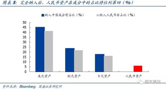 2019年1月31日,彭博巴克莱全球综合指数正式纳入了中国国债和政策性银行债成分,标志着中国债市成分进入世界主流债券指数迈出了第一步。完全纳入后,人民币计价的债券资产将在指数总市值中占比6.03%,成为仅次于美元、欧元和日元的第四大币种。