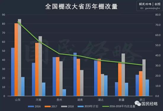 另外,从棚改总规模来看,山东、河南、贵州、湖南、湖北、新疆、浙江堪称全国六大棚改大省,这六省区2018年的棚改总量占全国的一半以上。