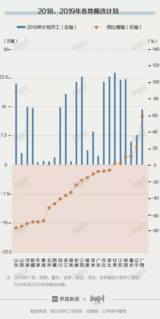 新年伊始,多地传来消息,2019年棚改目标量大幅锐减。据界面数据不完全统计,全国20个省市棚改计划下调,只有广西、重庆、辽宁、陕西等几省市有所上升。