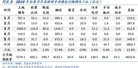 [4] 土储和棚改的项目不流入基建投资,因此1-5月基建投资类项目合计发行2389.8亿,其中收费公路和轨道交通专项债券分别发行241.4亿和116亿,占比10.1%和4.9%。