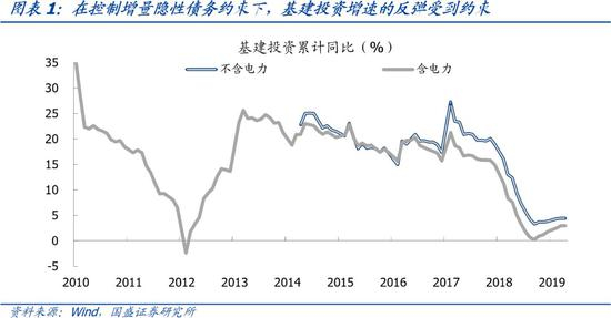 短期:下半年仍然面临稳增长谁来加杠杆的问题。今年一季度中国经济超预期企稳,地产、基建的贡献功不可没。进入二季度之后,地产一枝独秀的特征较为明显,在房住不炒的大原则之下,地产产业链的这种繁荣景象可能也难以长期延续。从政策对冲的角度来看,下半年中国经济仍然面临如何稳增长的问题,除了培育中长期增长动能之外,短期通过稳内需来对冲外部贸易摩擦对出口产业的负面拖累,以及应对棚改缩量对地产的负面拖累,具有一定的必要性。而且从资金角度来看,虽然今年上半年财政支出增速较高,专项债发行提前,但受隐性债务约束,基建增速反弹的幅度较为有限(见图1)。