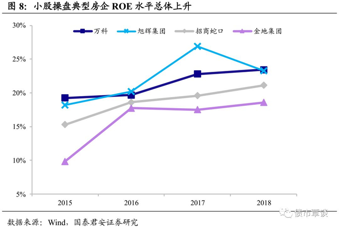 “以小博大”,减少资金占用规模,提升公司ROE水平。以万科为例,在小股操盘模式中一方面万科凭借其操盘方的身份可以获取多项收入来源,包括管理费、按持股比例的分红以及超额利润分配;另一方面可以降低资金投入规模,提升公司的ROE水平,在采取小股操盘模式后,万科的ROE已由2014年的19.08%逐年提升至2018年的23.42%。