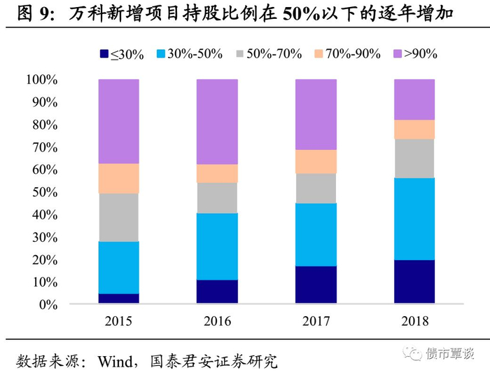 小股操盘的难点在于操盘方需要具备产品复制和项目管控的能力,一般中小型房企难以实现。小股操盘模式在帮助房企打破规模扩张瓶颈的同时,也要求房企具备在实践中大量复制的能力,例如万科新增项目中,持股比例在50%以下的占比逐年增加并且已过半数。一般的中小型房企难以同时运营这么多的操盘项目,因而较难复制这一模式,小股操盘基本上仍是大型房企的“游戏”。