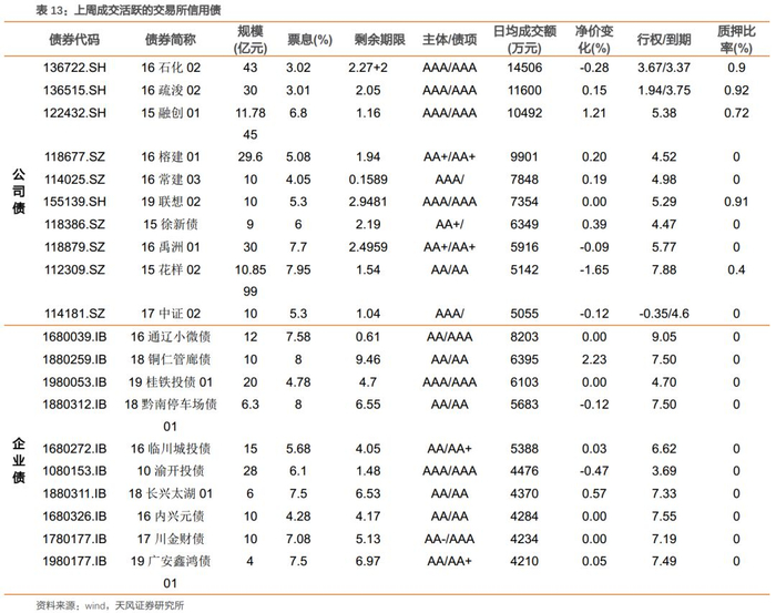 交易所企业债市场交易活跃度有所上升,公司债市场交易活跃度有所下降,企业债净价下跌家数大于上涨家数,公司债净价下跌家数大于上涨家数;总的来看企业债净价上涨119只,净价下跌165只;公司债净价上涨145只,净价下跌190只。