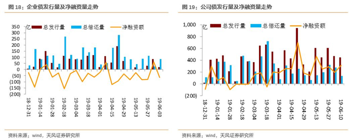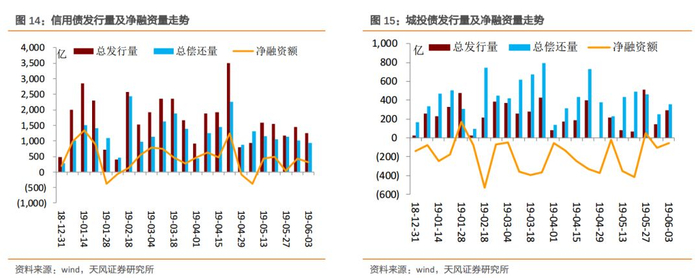 从年度融资数据来看,截止2019.6.14日,城投债净融资额达到2018年的70.6%,且2019年下半年到期压力与上半年持平。