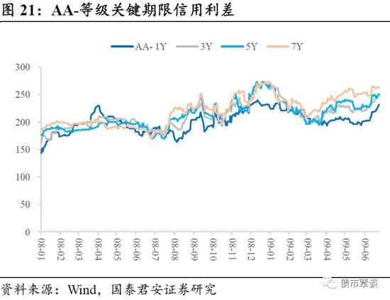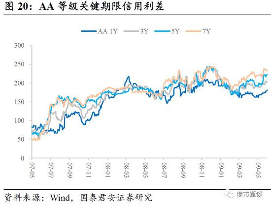控制等级变量,不同期限信用利差基本呈现以下规律:①1年期信用利差波动更大,受到资金面影响,且对高等级更为显著;②3年期与5年期信用利差走势更为趋同;③7年期信用利差在降息周期后期一般较其它期限走阔。