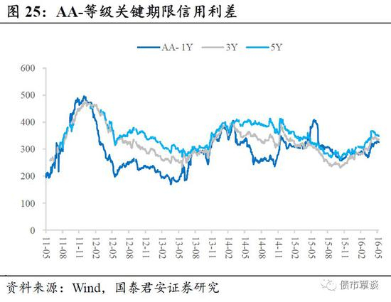 事件性冲击最先导致流动性冲击,利率债和高等级反应更大,中低等级滞后反应;虽然2014-16年是一轮加长版牛市,货币政策持续放松,债市屡破前高。但趋势中仍有波动,信用利差在此期间出现三次上行: