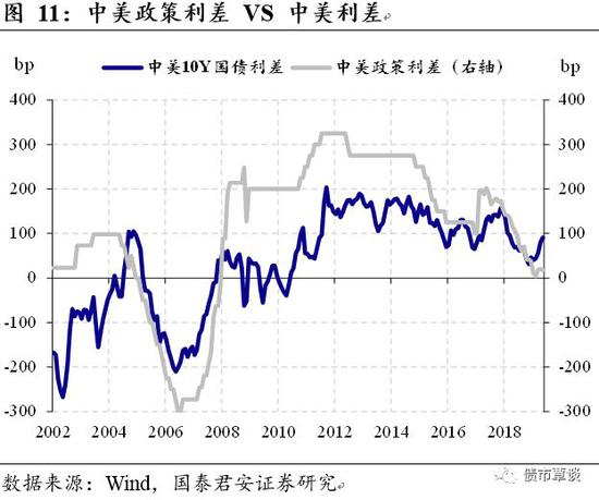 ③2015年“811”汇改之后,人民币贬值周期+国内经济下行周期和海外货币政策正常化周期,稳定人民币汇率在货币政策的决策权重上升,由于美国作为资本流出的主要目的地,维持与美国的货币政策联动、以及一个较高的中美利差的诉求在上升。
