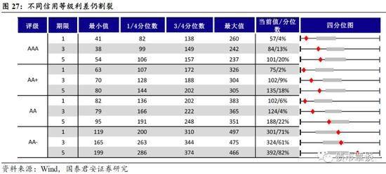 不同信用等级利差仍割裂。3Y期AAA、AA+、AA、AA-信用利差分别为84bp、102bp、124bp、324bp,分别位于历史分位数13%、9%、4%、61%。长期限信用利差普遍高于短期限品种,AAA评级,1Y、3Y和5Y信用利差分别位于历史分位数4%、13%、20%;而AA-评级,1Y、3Y和5Y信用利差分别位于历史分位数71%、61%、82%。