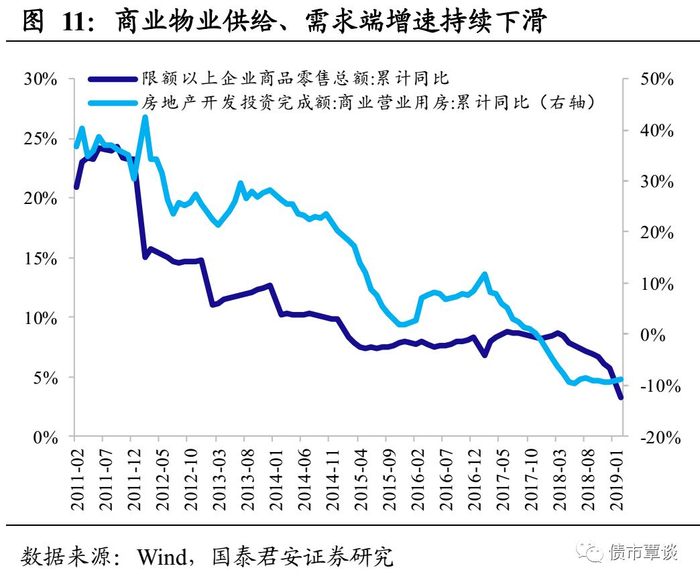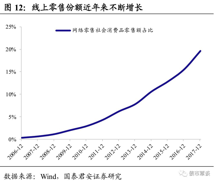 商业物业的景气程度与线下零售密切相关,近年来受电商冲击明显。2011年以来,商业物业供给、需求端增速开始趋势性从高位回落,反映线下大型商业物业需求的有效指标——限额以上企业(年营收不少于500万)商品零售总额同比增速持续下滑,而2018年开始商业物业投资增速也开始转负。原因一方面是我国经济增速与人均收入增速从11年开始趋势性下滑;另一方面,更为关键的是以阿里、京东为代表的线上零售迅猛发展,网络零售社会消费品零售额占比从2011年不足5%至今已超过20%。线上零售的大繁荣影响了线下需求,并大幅冲击了线下零售渠道体系。